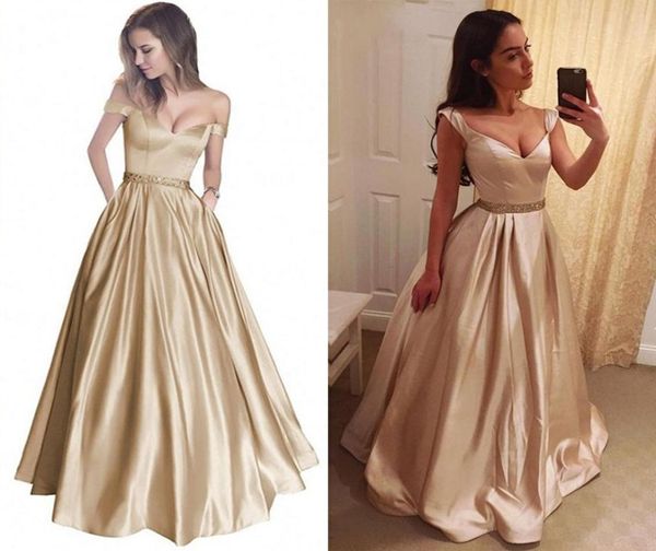 2018 elegant champagne gold ball gown prom dresses off shoulder crystal beaded sash satin floor length dark red backless evening d5375979, Black