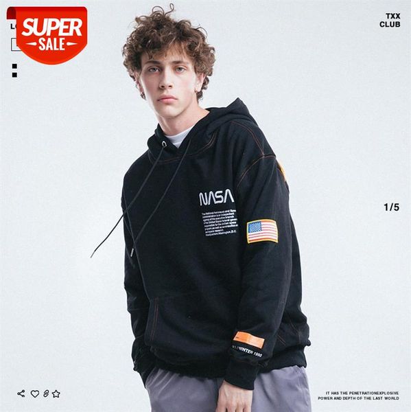2018 european and american fashion brand autumn winter men's clothing nasa space flag embroidered armbands hooded sweater #yo8j, Black
