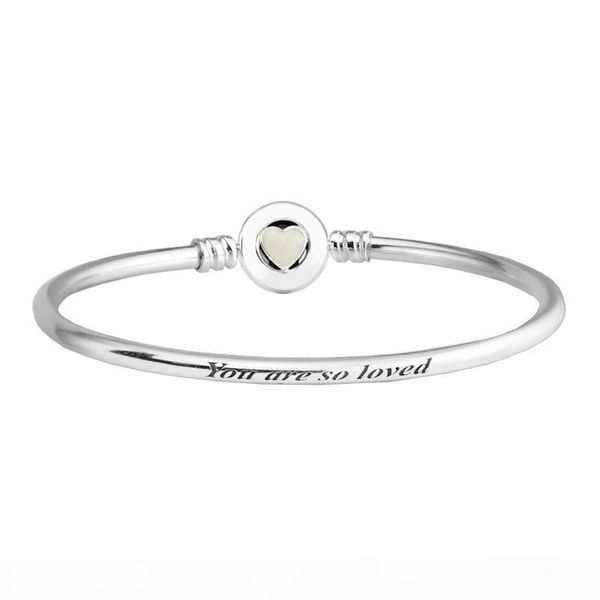 2018 mother day silver bangles original authentic 925 sterling silver jewelry loving heart, silver enamel, bracelets for women good gift, White