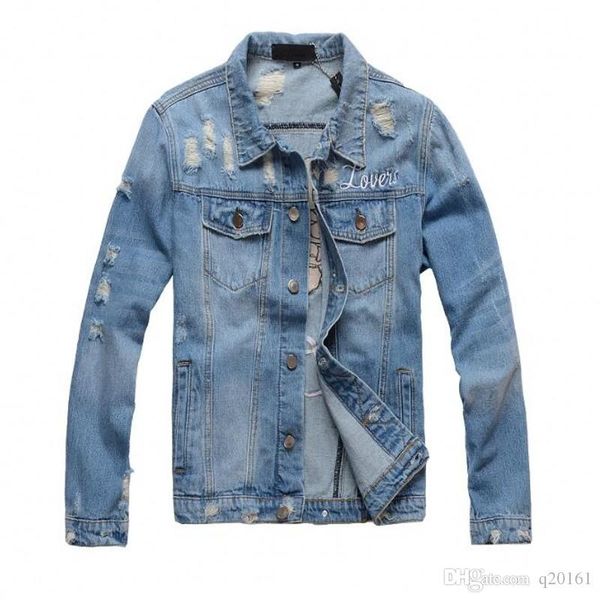 2018 new motorcycle letter printing denim jacket high fashion designer famous bomber denim slim windbreaker jacket mens jean clothing, Black;brown