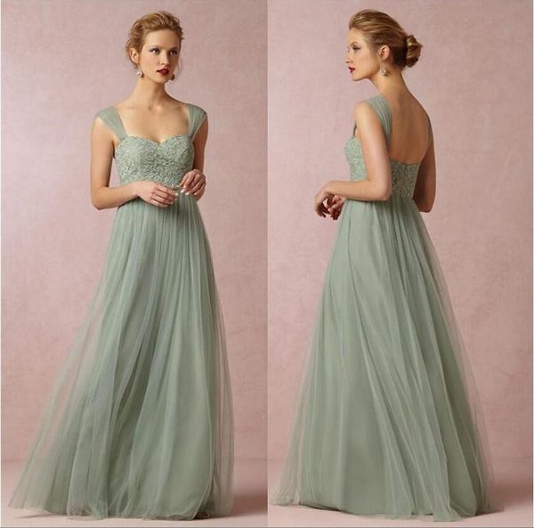 2018 sage green a-line lace applique long bridesmaid dresses sweetheart neckline cap sleeves tulle floor length prom dresses custom made, Blue;red
