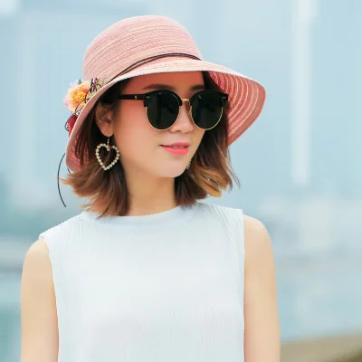 CYSINCOS Summer Straw Hat Female Flowers Pot Cap Travel Sun Visor Breathable Folding Sun Hat Photo Beach Hat