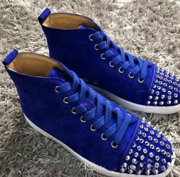 2019 Дизайнерский Бренд Натуральная Кожа Синего Цвета с Красными Ботами Спайк Унис