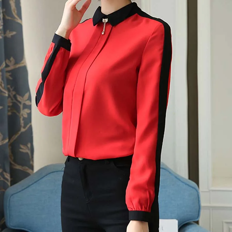2019 Женская мода шифон с длинным рукавом Офисная Леди Свободная Женская рубашка Блузки A038