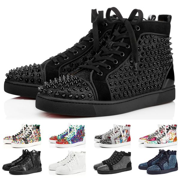 2019 кроссовки red bottom обувных low cut шипованных шипы обувь для мужчин и женщин обуви партии свадебного кристалла кожаных кроссовок, Black