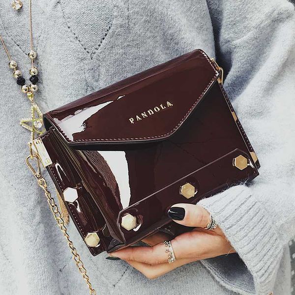 2019 новая волна супер огонь мода лакированная кожа повседневная заклепка дикая цепь плечо перекинуто сумочка