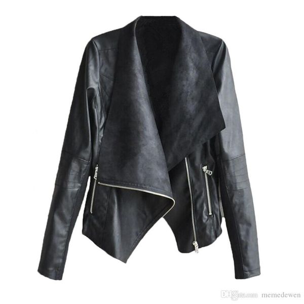 2019 осень нового zipper локомотива нерегулярной большой нагрудные длинные рукава pu черная кожаная куртка повседневной искусственной кожа к, Black