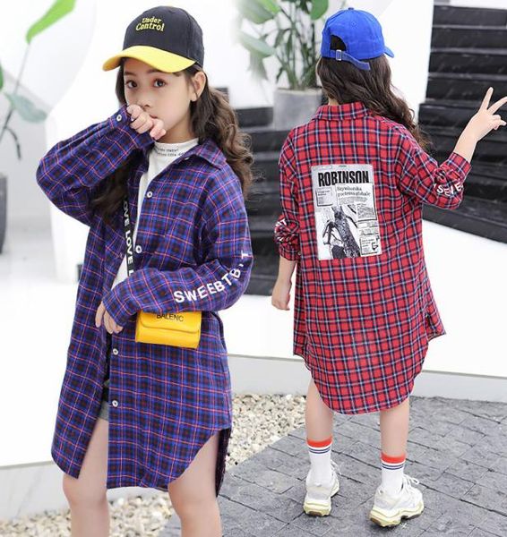 2019 autumn winter long shirts for 5 14 yrs teenage girls plaid school outfits simple ruffle big girl kids clothes blouse y1562699, White;black