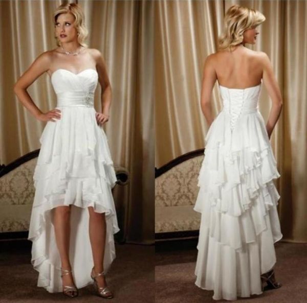 2019 high low beach wedding dresses sweetheart backless a line tiered skirt chiffon hilo charming bridal gowns vestido de noiva c9919396, White