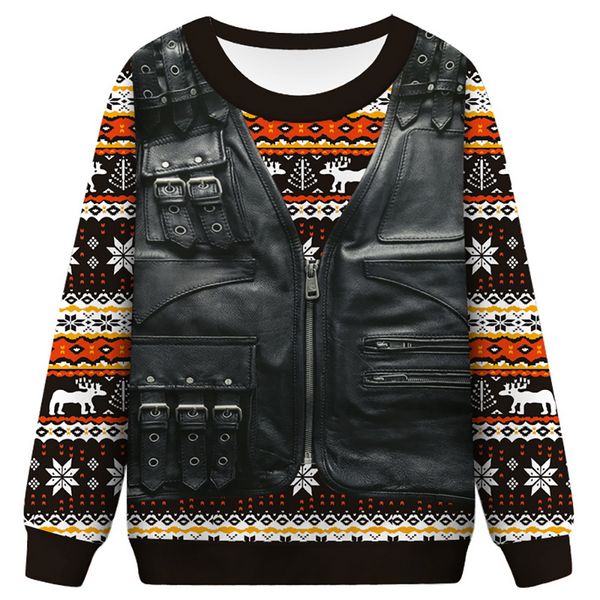 2019 new men christmas streetwear harajuku novelty 3d mens punk rock fitness sweatshirts fashion cool pu leather vest sweatshirt, Black