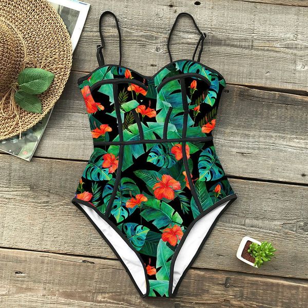 2019 new sexy one piece swimsuit women swimwear cut out bathing suit summer push up monokini print swim suit beach wear female