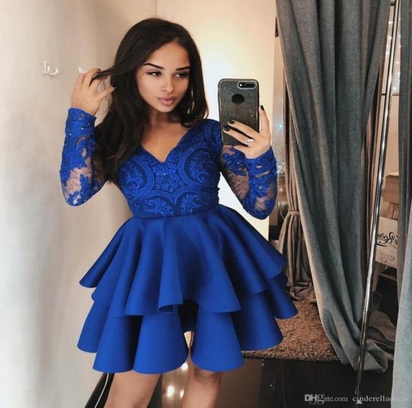 2019 royal blue short cocktail party dresses with tiered satin skirt custom made homecoming dresses 940598, Blue;pink