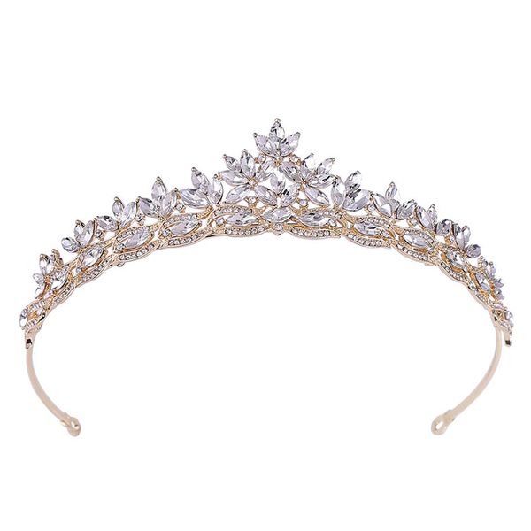 2019 simple leaves rose gold red blue crystal tiaras wedding bride crowns de noiva headband festival hair jewelry, Golden;white