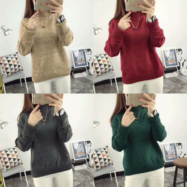 2019 spring winter women ladies thick knitted turtleneck pullover warm sweater pull femme jumper sweets femme korean clothes, White;black