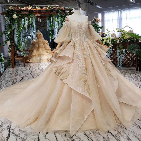 2019 summer latest wedding dresses tulle half sleeve tassel boat neck ruffle backless lace up back sequins applique pattern bridal gowns new, White