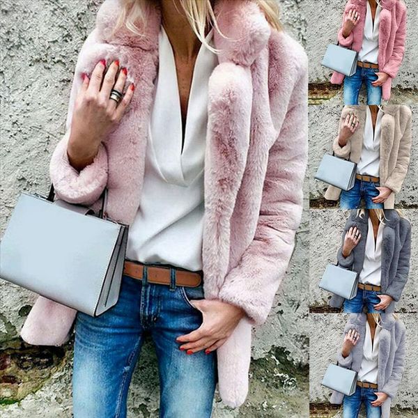2020 женщины искусственные шубы зимняя сплошная мода открытия открытия женщина длинный рукав теплый толстый пушистый куртка, Black