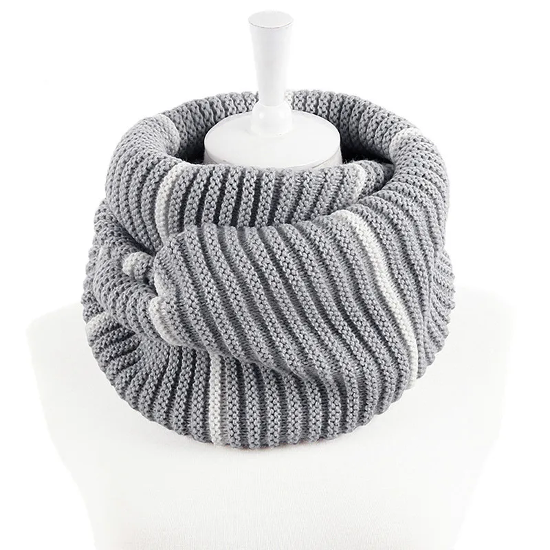 2020 зимний теплый вязаный шарф для женщин и мужчин зимние шарфы с двойной круглой петлей полосатые кольца шарфы