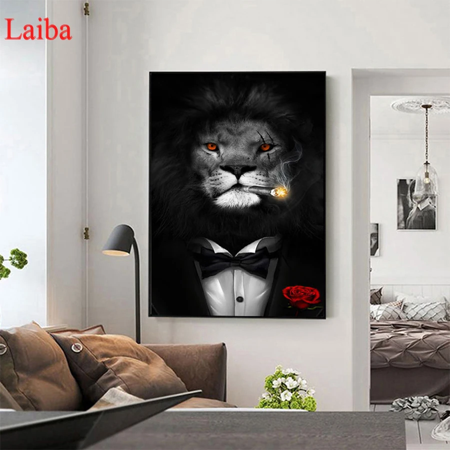 2020 круглая Алмазная картина Ретро стиль, рисование животных, Лев полностью квадратные Стразы картина, Алмазная мозаика на День святого Вале...