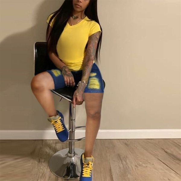 2020 новая желтая пряжа рваных джинсов джинсовых шорт женских, Blue