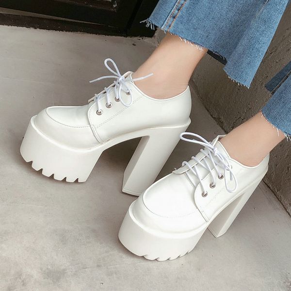 2020 новая осень туфли на высоких каблуках сексуальная русланы коршуновой толстые каблуки платформы насосы черный белый, Black