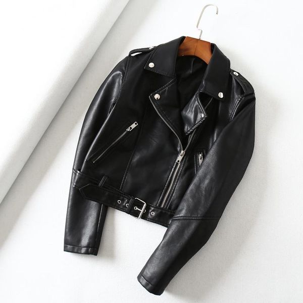 2020 новая осень faux женщин кожаная куртка женщины тонкий pu мото байкер пальто куртки женские байкер кожа, Black