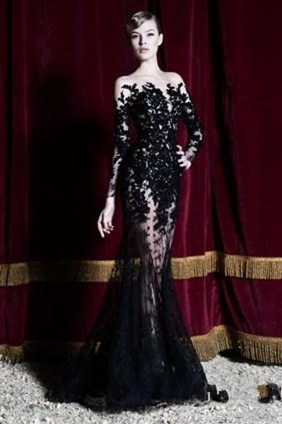 2020 новые вечерние платья с длинными рукавами черное кружево оболочка длинные прозрачные выпускные вечерние платья длинная длина пола особы, Black;red