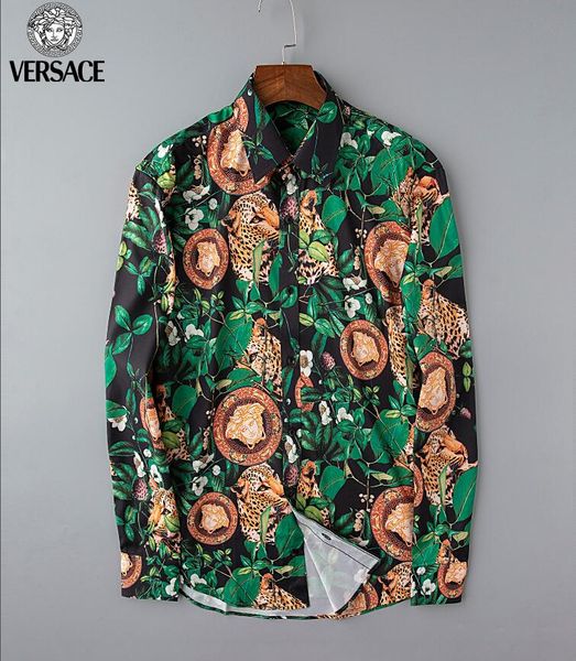 2020 осень зима с длинным рукавом повседневные рубашки прокатки воротник мужчины печатных платье рубашка цвет печати slim fit медуза шелковы, White;black