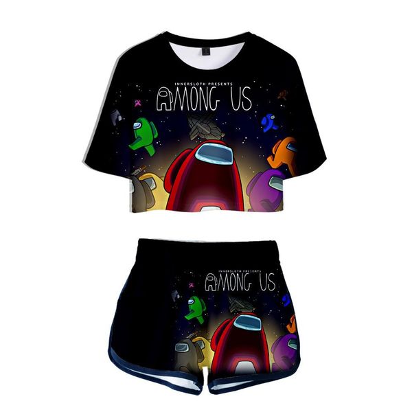 2020 среди нас 3d печатание моды вскользь два комплекта женщин 2new мода футболка футболка одежда короткая bbyjgs lg2010, Gray