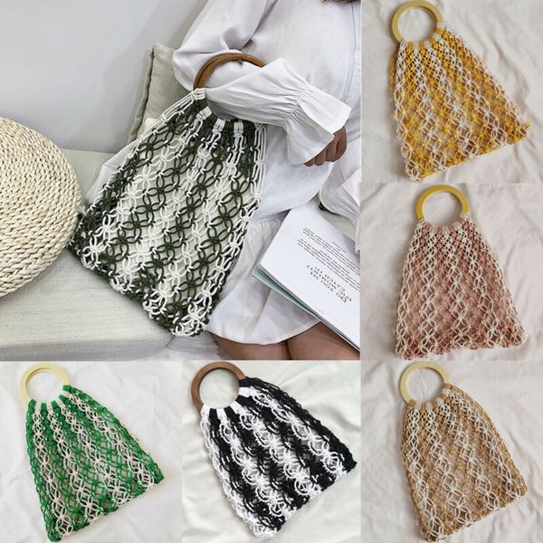 2020 тенденции моды жаркое лето новый boho женщины тканые сетки ажурные сумки полотняного переплетения круглые ручки сумки пляж большой емко