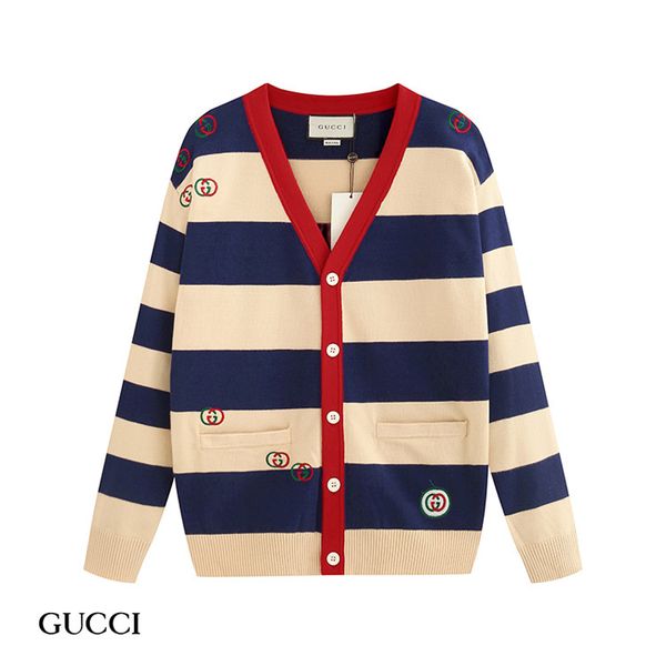 2020 autumn and winter explosion models men's and women's cotton real sweaterterry super embroidered striped knitted cotton swe, Black