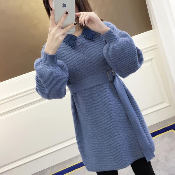 2020 autumn and winter fake two-piece long knit doll collar pullover sweater female lazy wind korean jacket lj201114, White;black