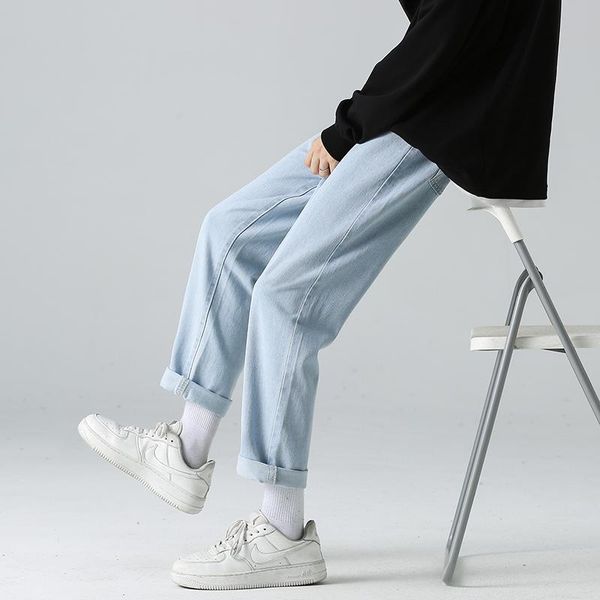 men's jeans loose casual street fashion solid color straight pants blue light clothing