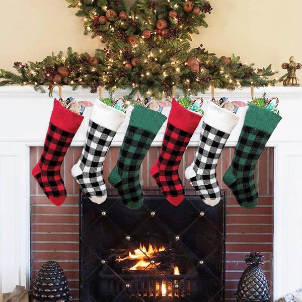 2020 christmas knitted socksplaid stocking candy bag hanging pendants christmas decorations, Black;white