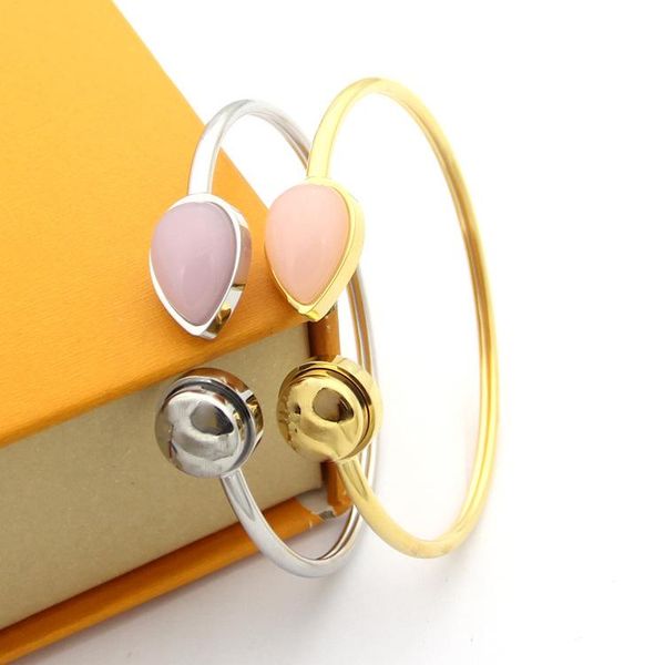 2020 designer titanium steel jewelry v letter round nail leaf powder agate opening bracelet ladies foreign trade flexable bracelet, Black