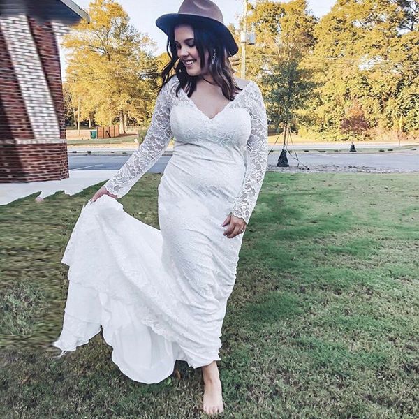 2020 elegant new full lace mermaid wedding dresses v neck long sleeves backless long bridal gowns custom made, White