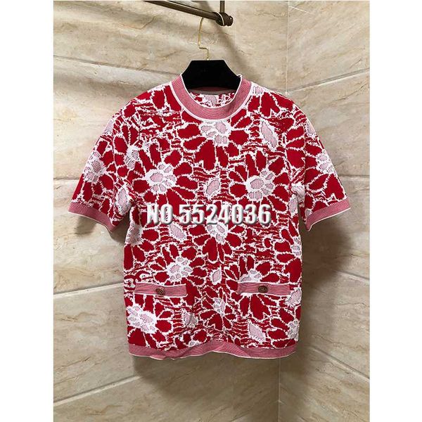 2020 flower knitted short sleeve button sweater women's o-neck ladies knitting elasticity shirts pullovers for female, White;black