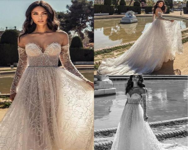 2020 julie vino boho wedding dresses sweetheart a line lace long sleeve bohemian wedding dress backless custom made country bridal3836924, White
