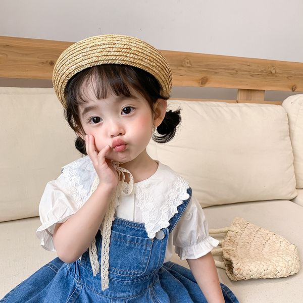 2020 korean new girls' baby collar short sleeve 2020 korean new girls' baby lace collar short lace shirt sleeve shirt, White;black