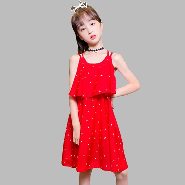 dresses for girls floral pattern dress for girl criss cross child dress summer children's clothing 6 8 10 12 14, Red;yellow