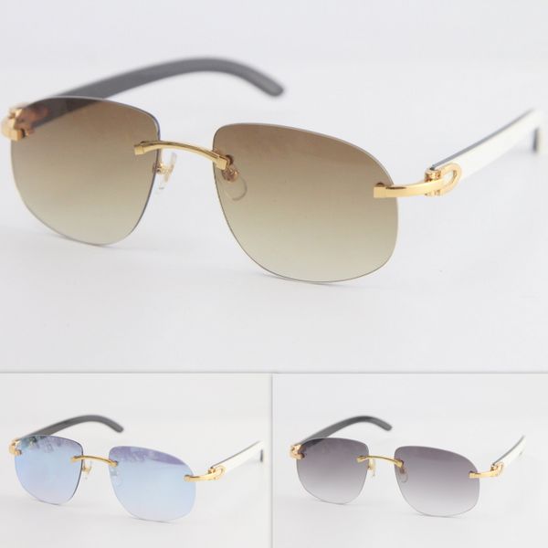2020 new rimless t8100928 men sunglasses genuine natural buffalo horn white inside black rimless glasses c decoration gold frame glasses, White;black