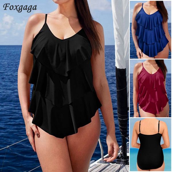 2020 ruffles one piece swimsuit plus size swimwear big size swimwear for women 3xl three lotus leaf layers hiding belly, White;black