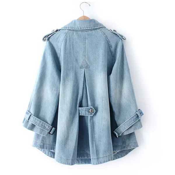 2020 spring autumn new female suit collar retro denim jacket double breasted ladies loose outerwear solid casual jeans jackets, Black;brown