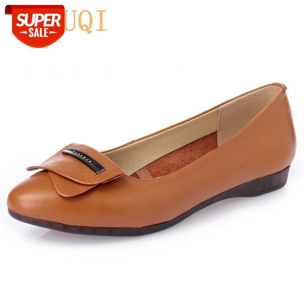 2020 spring genuine leather women shoes slope with the side buckle fashion shallow mouth comfort plus size 35-42 # peas shoes #u825