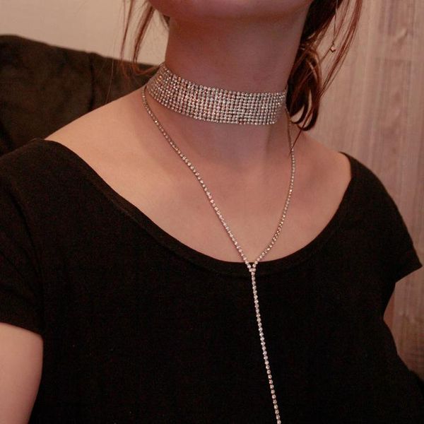 2020rhinestone choker кристалл gem роскошные чокеры воротник chocker коренастого ожерелья женщины ювелирные аксессуары boby цепочка ювелирны, Silver