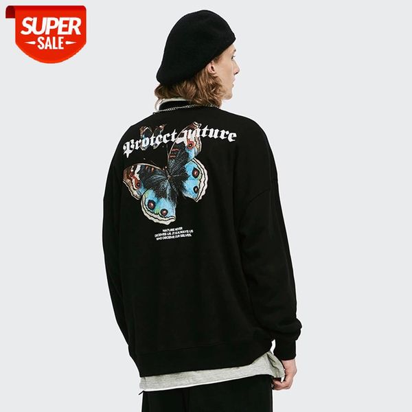 2020ss color butterfly print hip hop streetwear hoodie fashion harajuku hoodie swatshirt loose autumn winter pullover men cotton #kg0v, Black