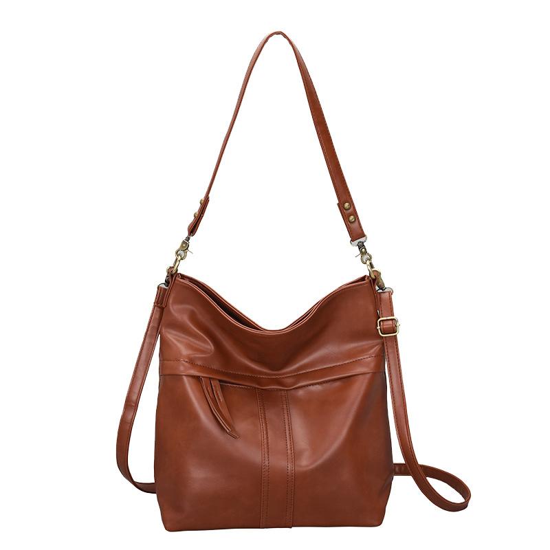 2021 Новая ретро сумка-мессенджер из масляной вощеной кожи на одно плечо для женщин, модная популярная большая сумка для женщин, повседневный рюкзак Tide коричневый