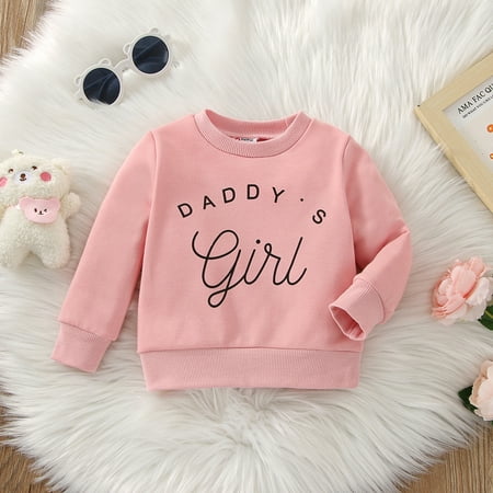 Infant Girls Letter Print Long Sleeve Sweatshirt Crewneck Sweater Toddler Baby Boy Girls Pullover Shirt Daddys Girl Tops Blouse Spring Outfit Casual Clothes 3-24Month