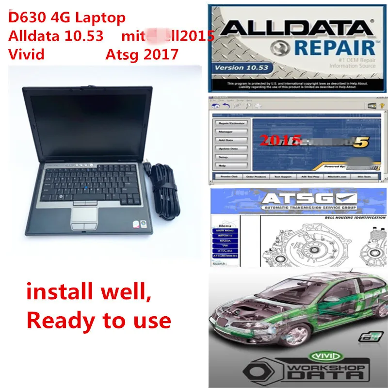 2021 горячая Распродажа всех данных 10,53 программное обеспечение для ремонта автомобиля Alldata Mit // chell OD 2015 atsg vivid 4 в 1 ТБ HDD, установленный на ноутбуке D630 4g