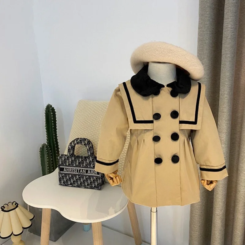 2021 двубортная черная детская ветровка с воротником, куртка, Детский тренчкот для девочек, верхняя одежда, пальто женское