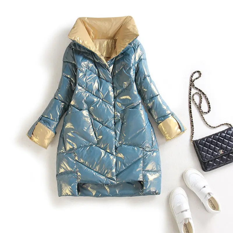2021 зимняя женская парка, Длинная тонкая стеганая куртка, пальто для женщин, яркая женская верхняя одежда